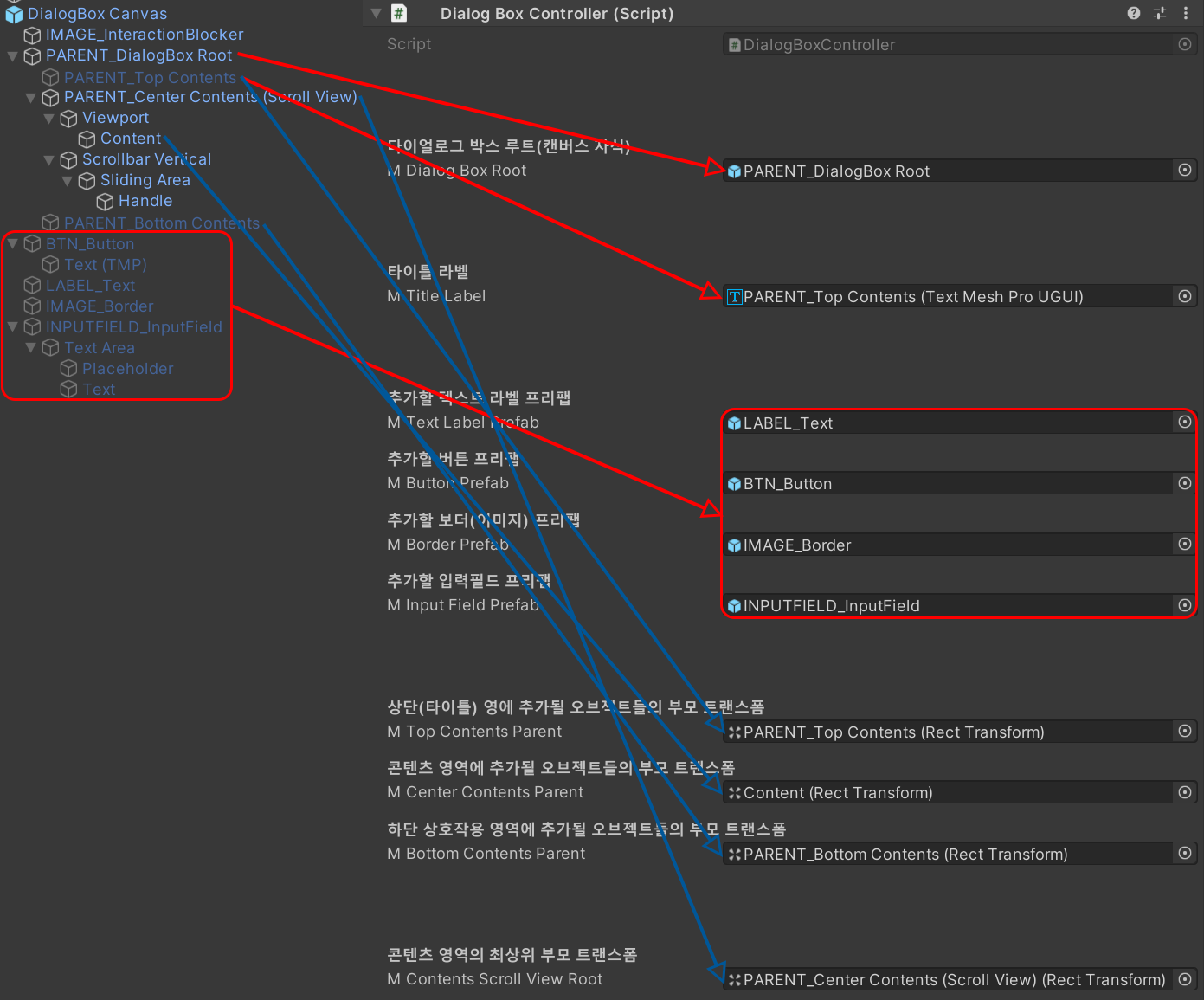 - mDialogBoxPrefab을 생성하여 관리하게 됩니다.