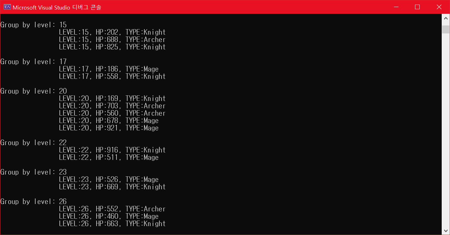 Console.WriteLine($"Group by level: {player.Key}");