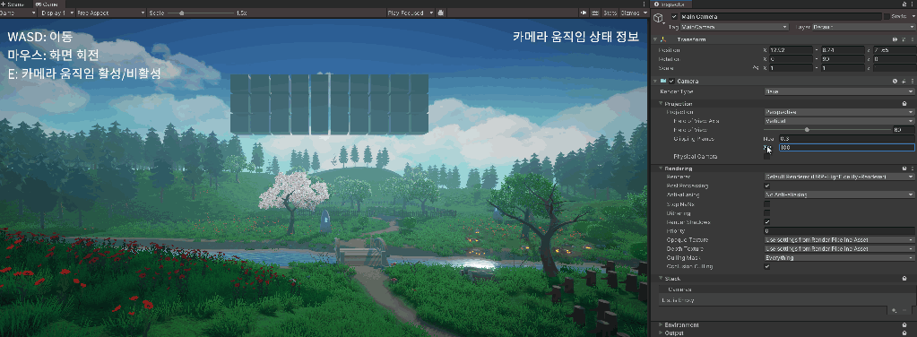 - Inspector(인스펙터)에서 카메라의 속성을 변경하여 여러 가지 기능을 다뤄봅니다.