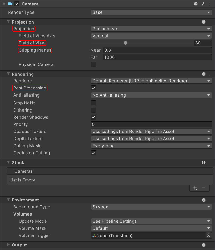 - Projection, Field of View, Clipping Planes, Post Processing에 대해 다루겠습니다.