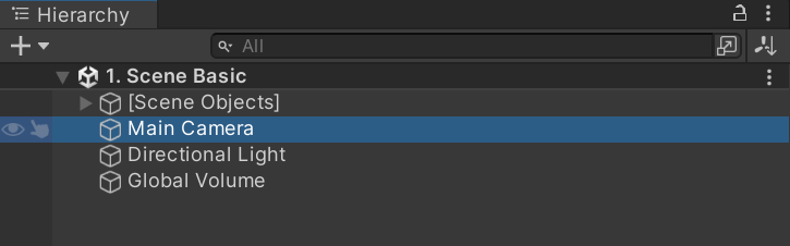 - 프로젝트 폴더 내 Scenes폴더 안에 있는 "1. Basic(Camera, Light)"을 엽니다.
