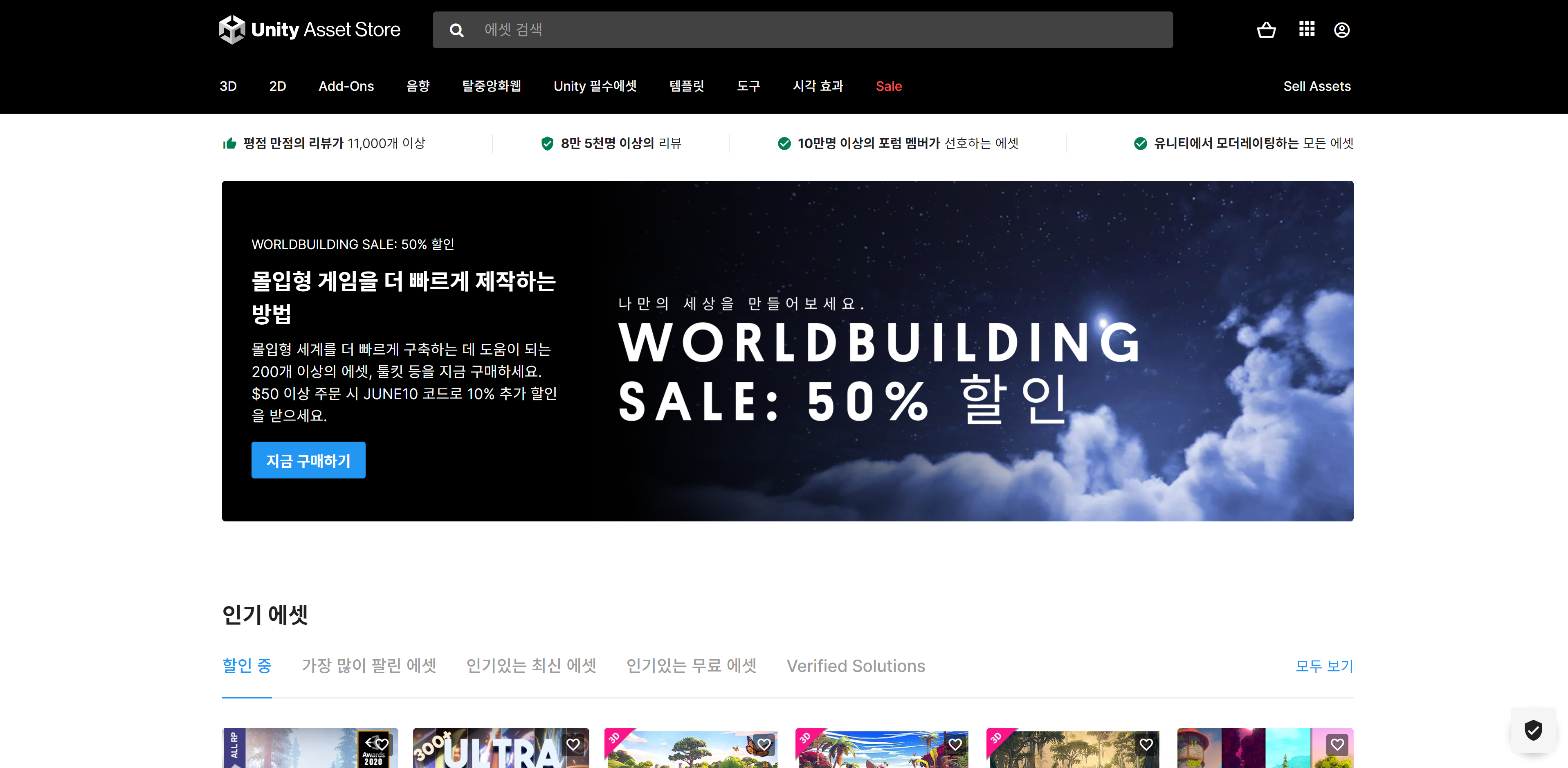 다른 사용자들이 판매하거나 무료로 배포하는 에셋(파일 등)을 구매하거나 다운로드하여 사용하는 방법을 배웁니다.